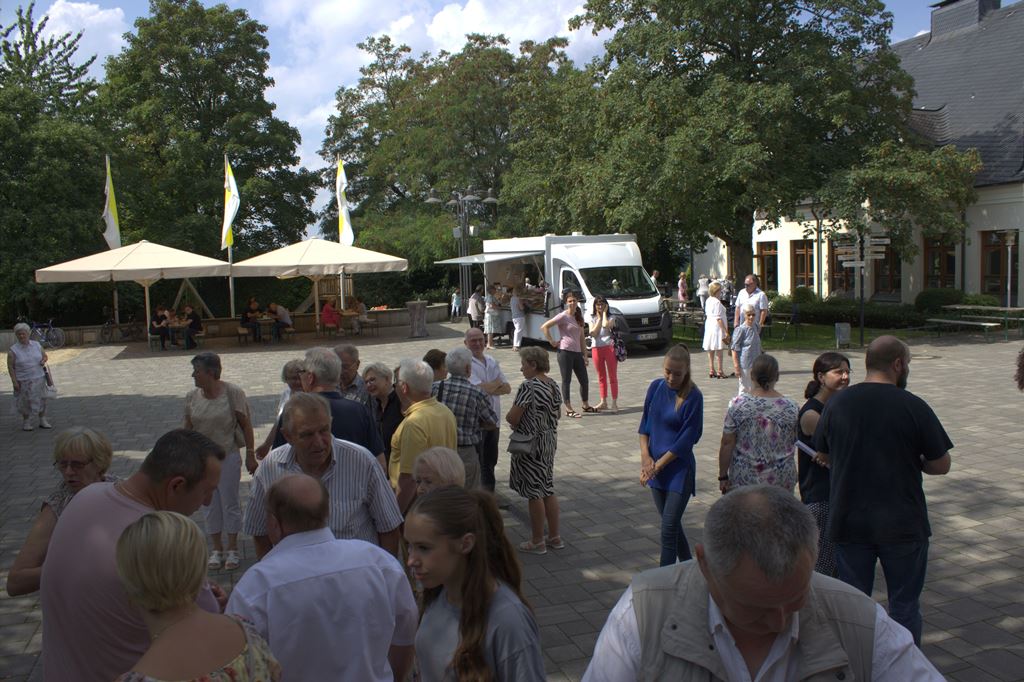 Bei schönem Sommerwetter ließen sich die Wallfahrer auf den Bänken nieder. Gulaschsuppe, Brot- und Kuchenspezialitäten fanden guten Absatz. Man tauschte sich aus wie schon in früheren Zeiten.