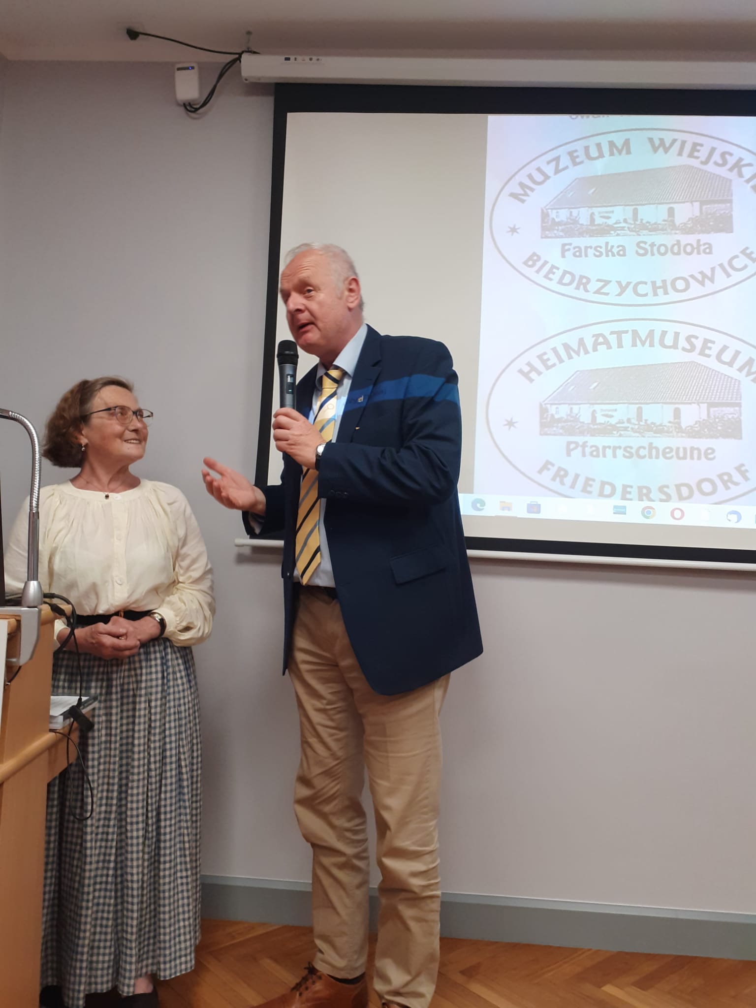 Zum Abschluss der Tagung hat Ró?a Zgorzelska von der Deutsche Minderheit über das Dorfmuseum „Farska Stodo?a“ (Pfarrer Scheune) in Friedersdorf (Biedrzychowice) berichtet. Das 2002 eröffnete Dorfmuseum ist in einer wunderschön restaurierten alten Scheune untergebracht, die heute von außen und innen wie ein altes schlesisches Haus aussieht. Es gibt Hunderte von Exponaten, die die Geschichte, Kultur und Tradition der Region darstellen. Zu sehen sind u.a. Gebrauchsgegenstände, Möbel, Haushaltswaren (auch Gusstöpfer aus Malapane), Porzellan, Dokumente, Bücher und regionale Trachten. An den Wänden kann man Archivfotografien aus den Jahren 1876 – 1935 bewundern. Neben der Dauerausstellung organisiert das Museum thematische Ausstellungen zur Geschichte und Tradition des Dorfes und der Region sowie zahlreiche kulturelle Veranstaltungen.